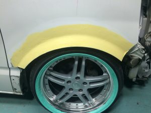 2023年7月27日 / 最終更新日 : 2023年7月27日 garageuser カスタムカー ヴォクシー オーバーフェンダー加工から公認車検まで② ヴォクシー オーバーフェンダー加工から公認車検まで 鉄板溶接出来たのでパテ整形 写真で分かるようにおアーバーフェンダーにはなるべくパテは盛らないように作ってます。 ※パテで作るとタイヤと当たった時に割れるからです。 Facebooktwitter