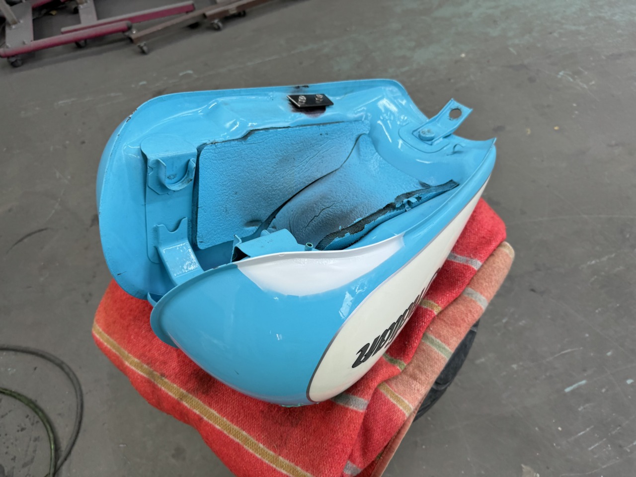 2025年3月30日 / 最終更新日 : 2025年3月30日 garageuser 修理 カスタムペイントされたタンクの漏れ修理、部分塗装 カスタム塗装されたタンクが錆びて燃料漏れをしてましたので修理しました。 出来れば塗装は変えたくないと言う事で部分塗装しました。 下側だけだったので穴埋めして、なんとか部分塗装出来ました。 ※場所によっては部分塗装は無理です。 Facebooktwitter